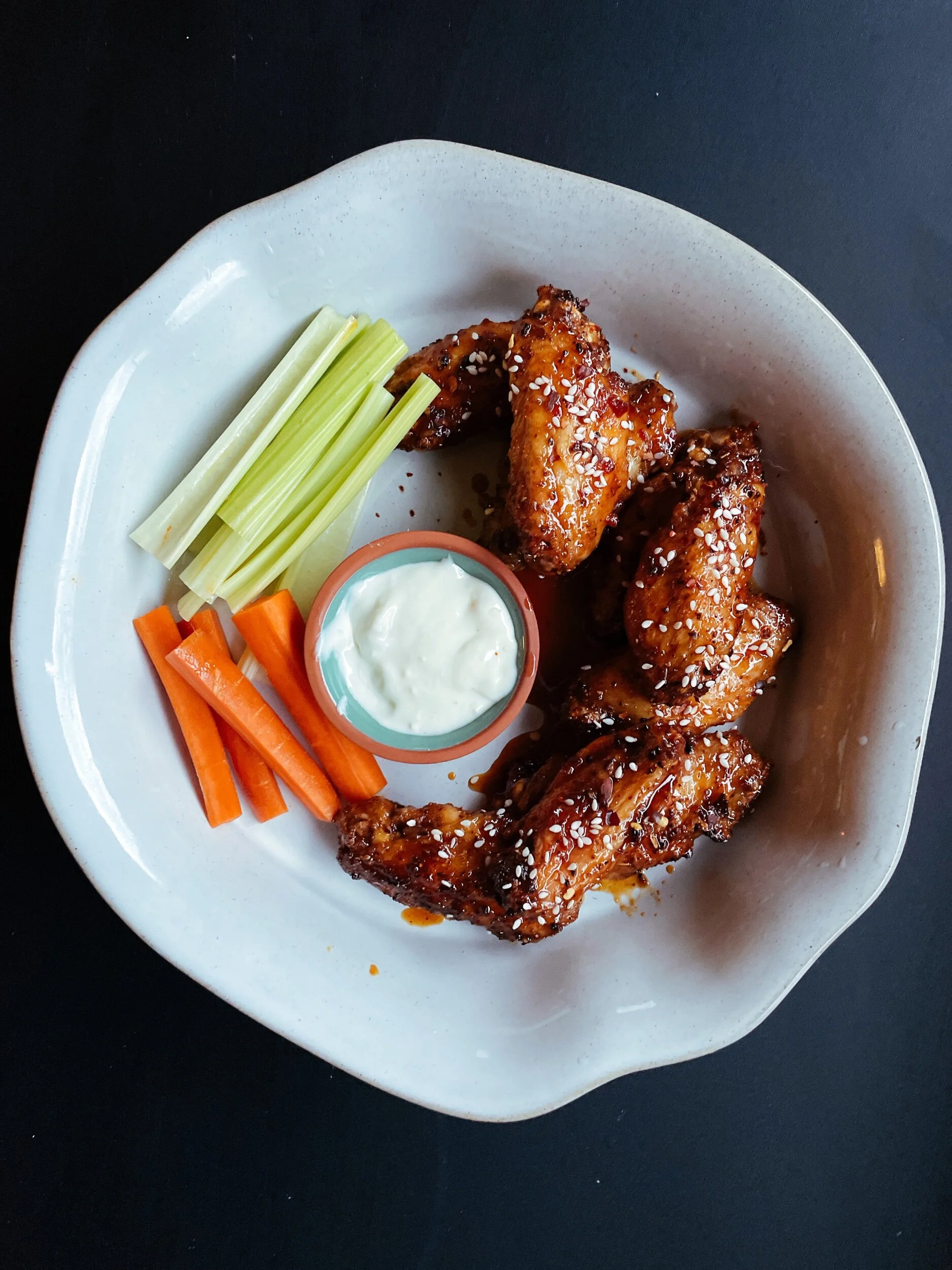 Oh, hey. Didn’t see you there, I was too busy using my air fryer… AGAIN. I have to be honest, I don’t really like chicken wings. And coming from Buffalo, New York, that is a crime punishable by up to ten years in county jail. That being said, I caught a hankering and here we are. Back to my new favorite machine, air frying wings. These are tangy with a little heat and quite honestly, finger licking good. As I mentioned I’m from Buffalo, so the only dipping sauce allowed here is blue cheese. However, I’m not NOT telling you to try it with my Avocado Ranch featured in my Ranch Cobb Salad. You didn’t hear that from me… in other news dig in and no air fryer? No problem. Just bake these bad boys at 425 for an hour, flipping every 20 minutes or until crispy and delicious. I hope you enjoy them as much as I did.